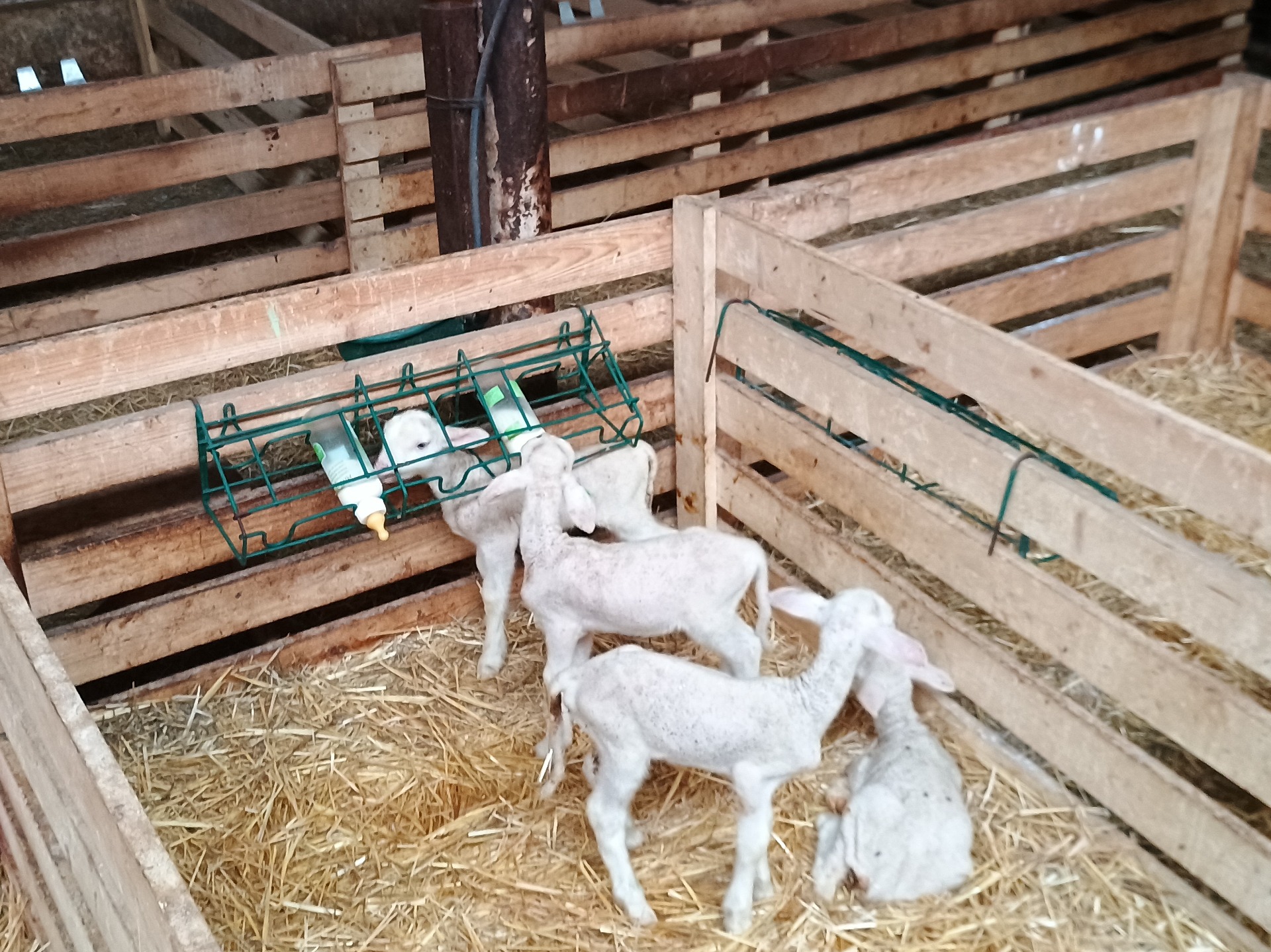 Žľaby plné kvalitného sena, obilnín a granúl. Voda v napájačkách doplnená dávkovačom vitamínu E a selénu. Jahňatá odchovávané na fľaške, kde dostávajú natívne mlieko s okysľovadlom, aby sa mlieko nekazilo a nemuselo meniť za čerstvé a teplé. Neskôr dostávajú "kompletnú kŕmnu zmes", aby mali rovnomerné prírastky.